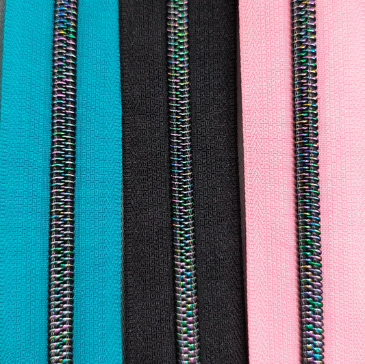 Silver with Rainbow Gradient Teeth Zipper Tape