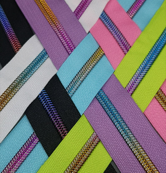 Violet Purple Zipper Tape with Rainbow Gradient Teeth