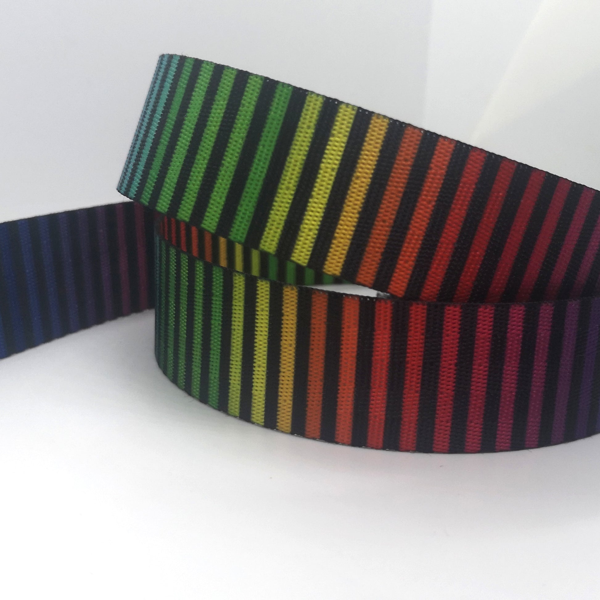 1 Inch Bright Rainbow and Black Stripes webbing